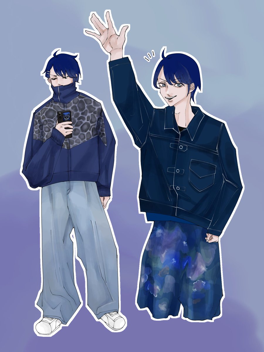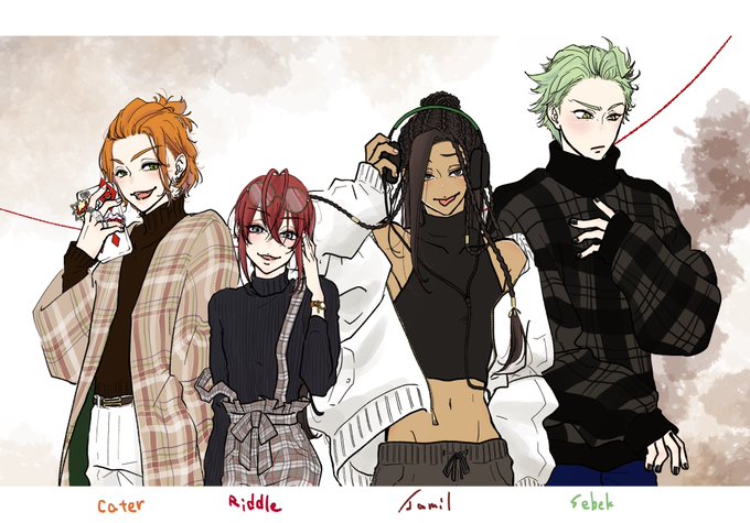 #twst_ootd #ツイステファンアート リクエストありがとうございました✨ 皆に暖かい格好してほしくて私服を捏造させてもらいました! 背景に私をイメージする空の色をバックに並べさせてもらいました!全部並べきれずに申し訳ないです💦 こちらにもご回答ありがとうございました!🙇嬉しかったです!