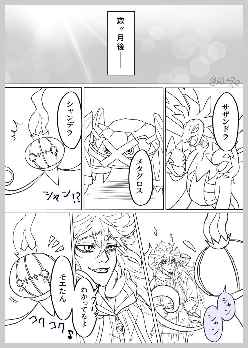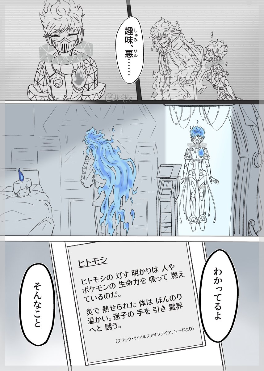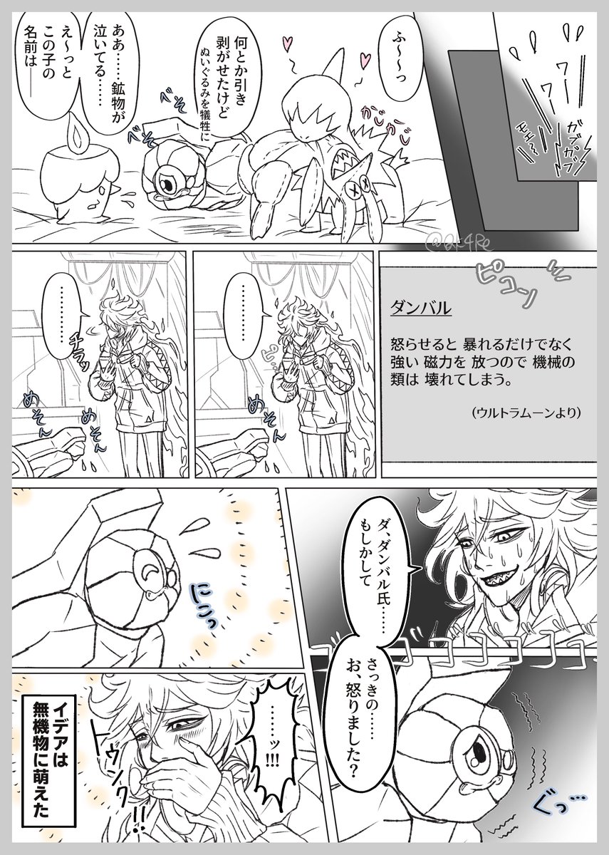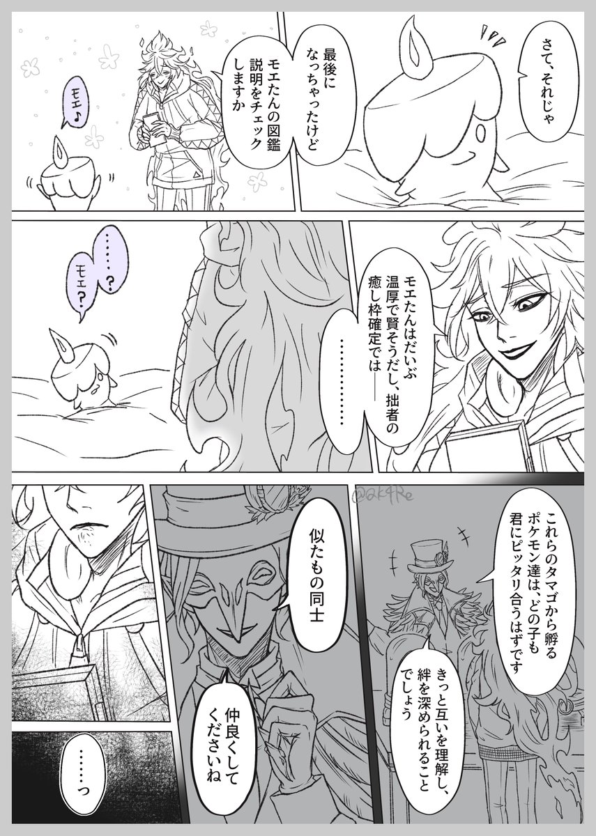 💀イデア氏ポケモン漫画② (4/9) 先月末に描いた謎漫画の続きです。 ※引用しているツイートが前回のものです。 前回、いくつかミスしてしまいましたが、モノズのしっぽの色が一番気になります……間違えてごめんねモノズ💦 下に続きます。 ⚠️クロスオーバー⚠️twst & pkmn #twst_pkmnパロ twitter.com/Qk4Re/status/1…