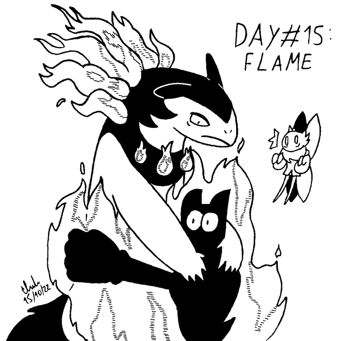Inktober Day 15 - Flame Hisuian Typhlosion, the Ghost Flame Pokémon. Said to purify lost, forsaken souls with its flames and guide them to the afterlife. Chili just wanted a hug, not to be purified. #Inktober #inktober2022 #inktoberday15 #pokemon #typhlosion #flame #myart