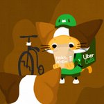 お昼は一人だったので持ち帰りでランチを買ってきた。自転車に乗りながら、自分で頼んで、自分に運ぶウーバーイーツだなと思った。 #ネコキャット #猫と仕事とランチと #uber #フリーランス #グラフィックデザイン #イラスト #illustration