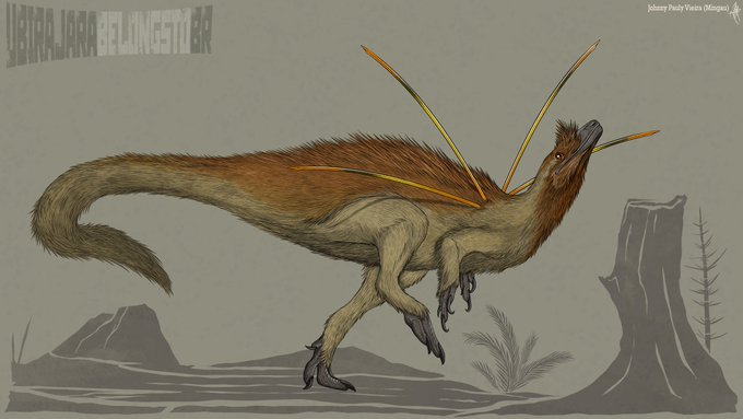 Wistful Ubirajara, thinking of home. #ubirajarabelongstobr #brazil #paleoart #sciart #paleontology #dinosaur #dinosaurs #dinosaurart #art #ArtistOnTwitter @ProjetoCiencia