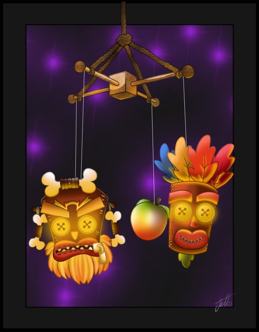 #Crashtober2021 DAY 4: AKU AKU/UKA UKA #Inktober2021 DAY 4: KNOT #Inktober #TraditionalArt #CrashBandicoot #CrashBandicootfanart #AkuAku #UkaUka