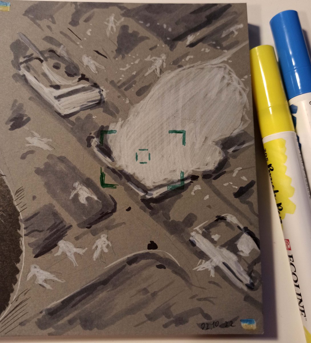 Day 2: Scurry The beginning of the war was also the time when the efficiency of ZSU was revealed. There were ton of footage from now famous Bayraktar TB-2 drones, wrecking havoc on russian supply lines. #украрт #ukrart #inktober2022 #ukrainewar