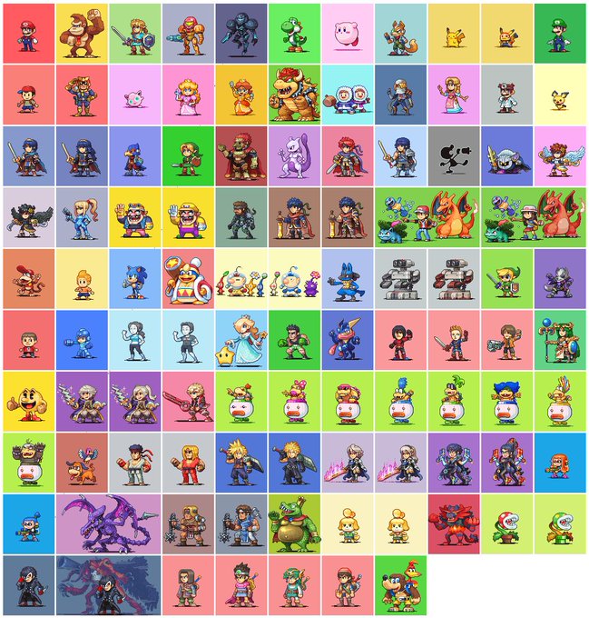 And with that, ALL 5 newcomers sprited!! Finally god. #pixelart #smashultimate #ultimate #krool #darksamus #SimonBelmont #RichterBelmont #Chrom #smash Enjoy!