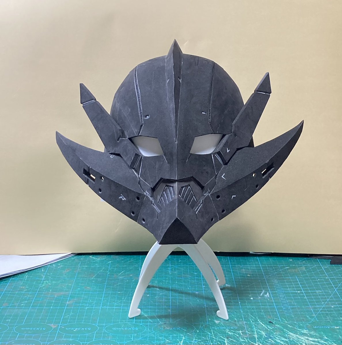 ベムラー頭ボード組み完成 勢いだけで作った割にはカタチになった♪ しかしもっと攻めろ(小さくしろ)との声が天から聞こえたので、縮尺変えてもう一回作ります〜 (これもそんなにデカくないんだけどね…) #ultramanコスプレ