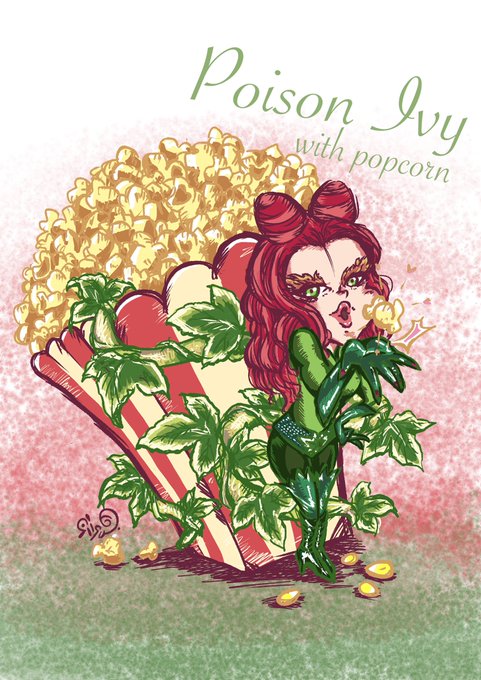 【イラスト】 『ポイズン アイビーwithポップコーン』 #PoisonIvy #popcorn #DCcomics #ポイズンアイビー #ユマサーマン #UmaThurman #バットマン
