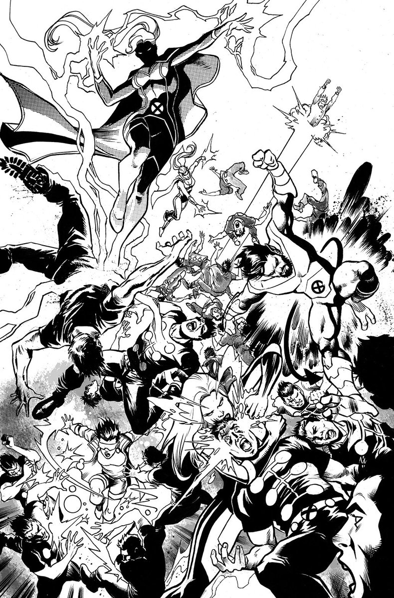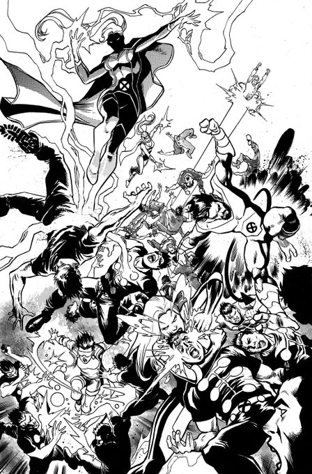 Here is a splash page in b&w from Uncanny X-Men issue 3 on sale next week! #uncannyxmen @79SemiFinalist