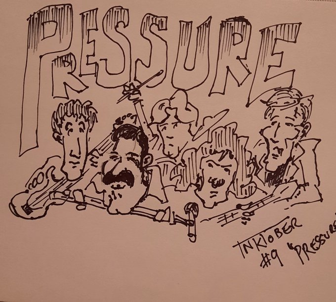 Today's #Inktober2021 prompt is #pressure. Look closely and you might see #DavidBowie and #FreddiMercury. #UnderPressure #Inktober #inktoberprompts #queen