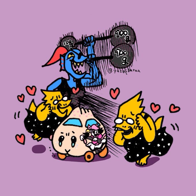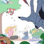 パーティーに大遅刻だけど6周年おめでとう! LINEスタンプ、公式プレイ配信、Δチャプター2と重なる公式サプライズに心がかき乱されて「Toby氏の前足の上で転がされてるな……」と思った気持ちから生まれた構図 #happybirthdayundertale #undertale6thAnniversary #Undertale6周年