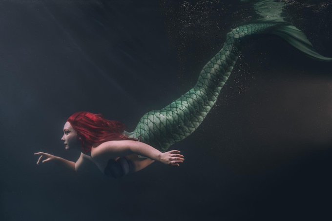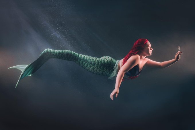 ""You’re not getting cold fins now, are you?"" Ariel / The Little Mermaid Cosplay by @madcatkosmos Photos by @FoodAndCosplay Taken at Tank Space #littlemermaidcosplay #underwaterphotography #underwaterphotoshoot #arielcosplay #mertailor #mertailormermaid #cosplay