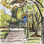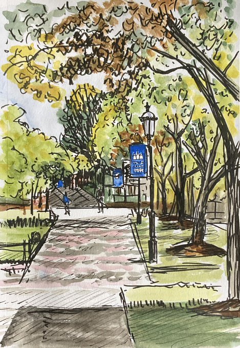 Move in day at @SetonHall. My son is back on campus and a new semester begins. Here is a view from outside his dorm. The campus is quite beautiful. #art #ink #watercolor #university #setonhall #college #campus #BackToSchool