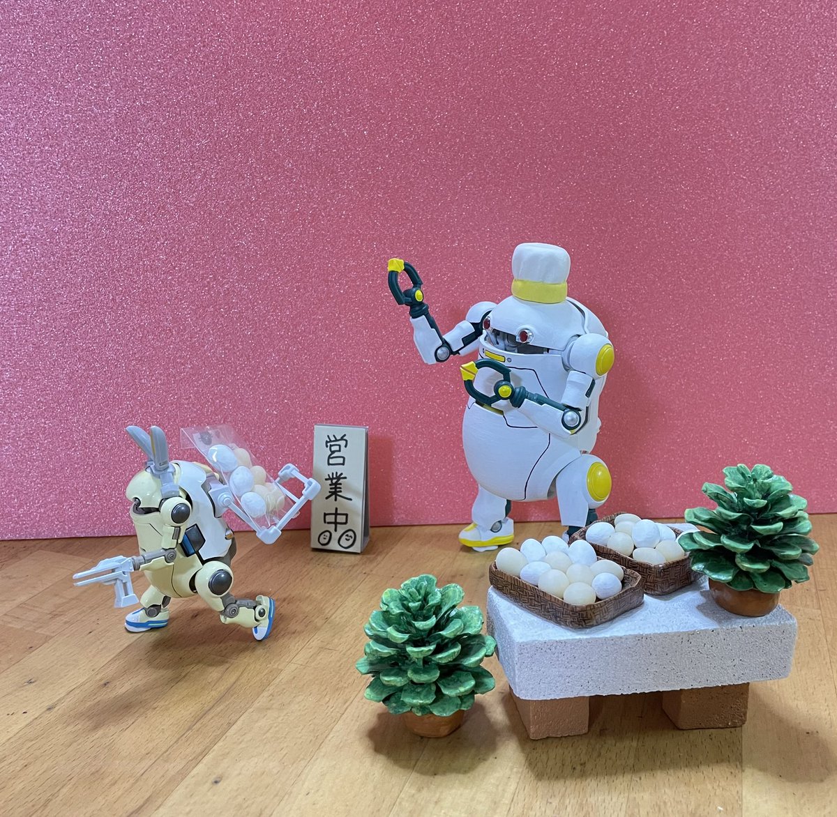 #unpan_wego #メカトロウィーゴ めかとろたまごの配達は おまかせくださーい! 今日は めかとろkimiでんちの お届けでーす! うさたまごくん 配達 がんばっています(^-^)✨ コックのたまごさん 喜んでくれています💕