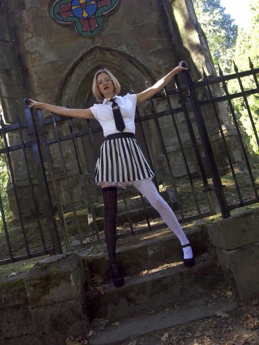 bentbox.co/showbox?cUYfNC… Graveyard fun (SFW) #cosplay #graveyard #black #white #glasses #alt #upskirt