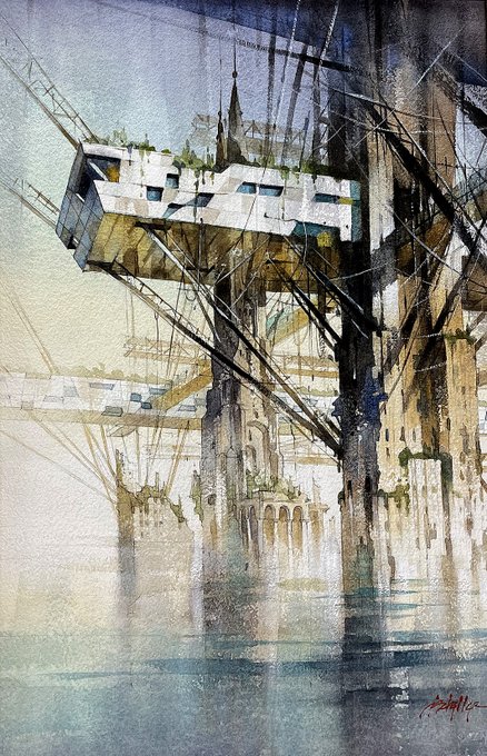 New cities - like branches on a tree - stretch out from the trunks of ancient cities below. Three from my "Horizontal Cities" collection as seen in the Architecture in Perspective 36 Convention this week @asaihq #architecture #imagination #art #urban #watercolor #drawing