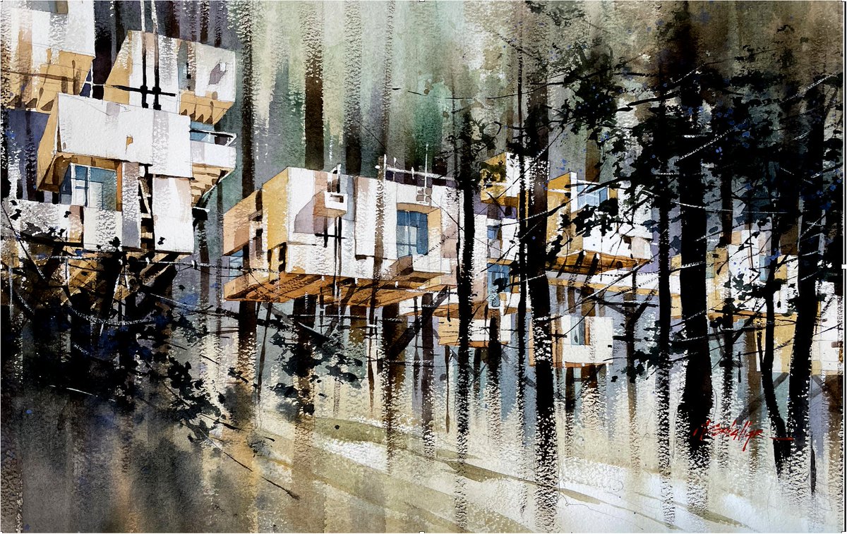 Last one for today Early evening,Shelton Mixed media on paper #art #painting #landscapepainting #urban #urbanart #ArtistOnTwitter