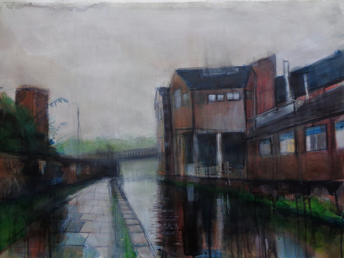 New picture Urban landscape , canal side featuring @EmmaBridgewater works Mixed media on paper #canal #artontwitter #urban #landscape #potteries