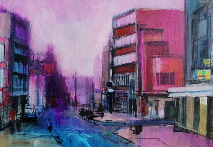 Trinity Street,Hanley Mixed media on paper #art #painting #landscape #urbanlandscape #ArtistOnTwitter