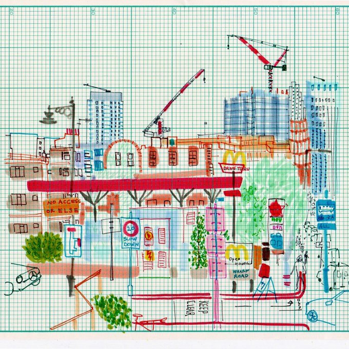 Went to London on Friday. Here’s a scene from the Islington City Road area. #London #urbanlandscape #ArtistOnTwitter #thedailysketch