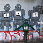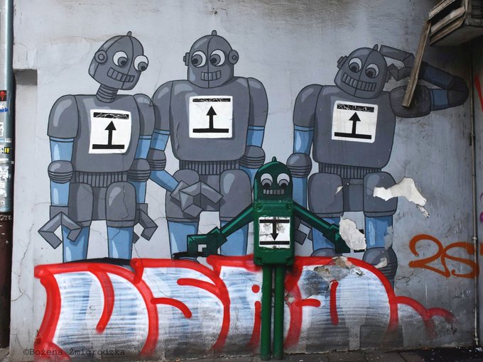 Rodzina robotów i dziwne dziecko. Kraków, ulica Zwierzyniecka Photography by Bożena Żmigrodzka #Kraków #photography #streetphotography #streetphoto #streetart #street_art #graffiti #mural #fotografia #urbanphotography