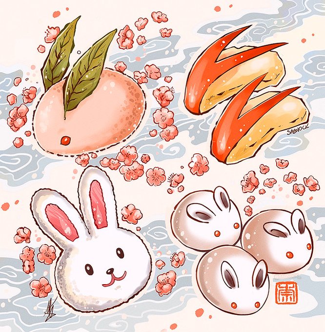 instagram.com/p/CrHvj26tNRq/ Fast digital drawing of Rabbit shaped food study~🐇✨🎶 Mochi with leaf, sliced apples, onigiri and candies~ #art #イラスト #usagi #illustration #japanesefood #かわいい #兎