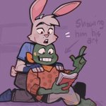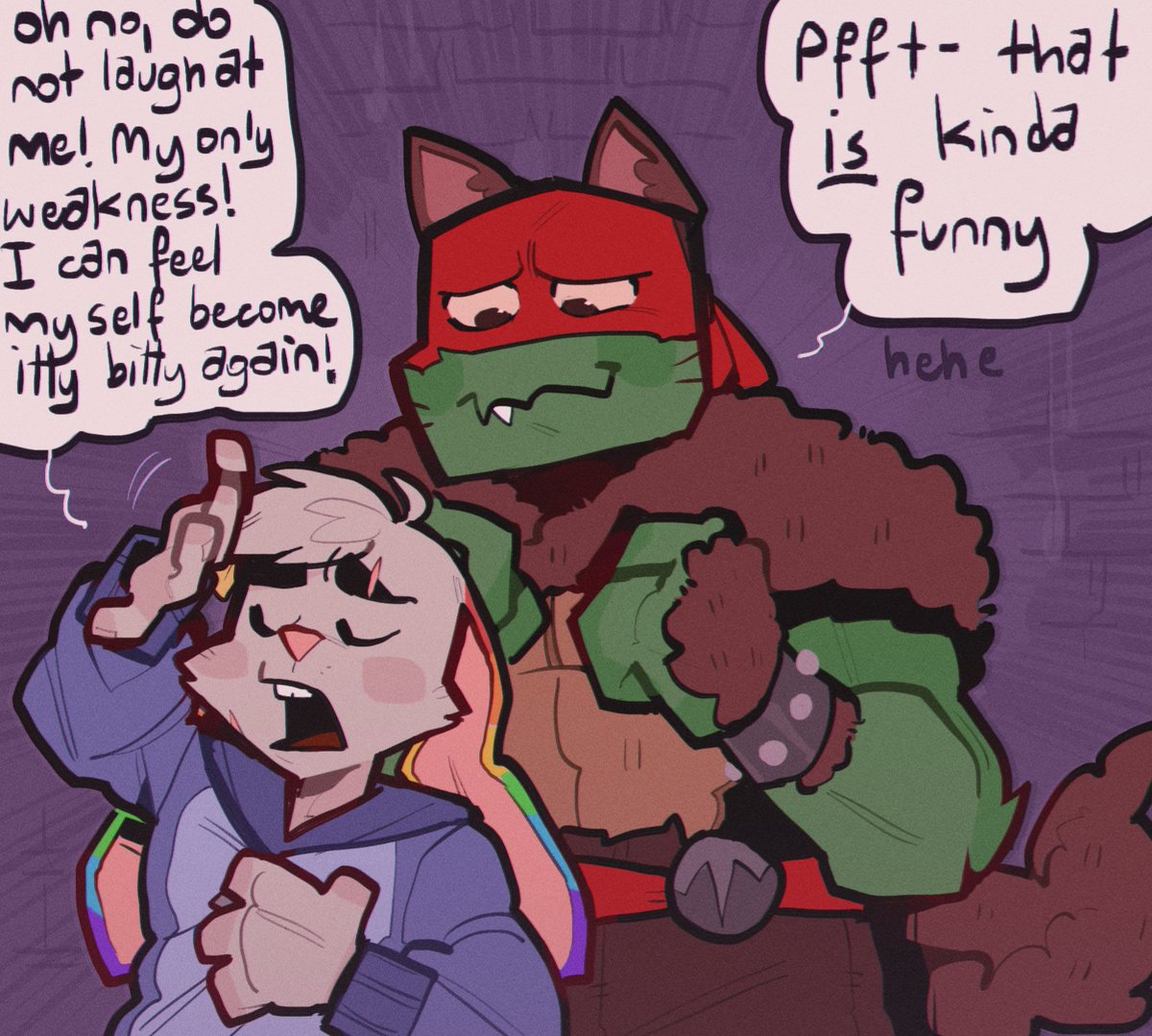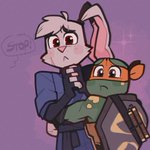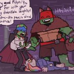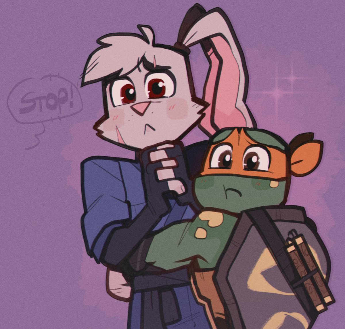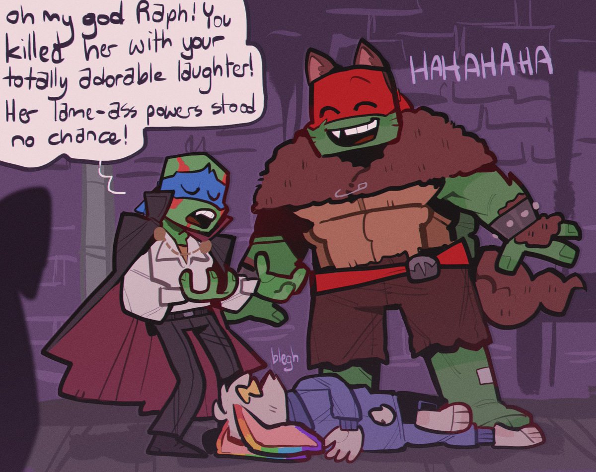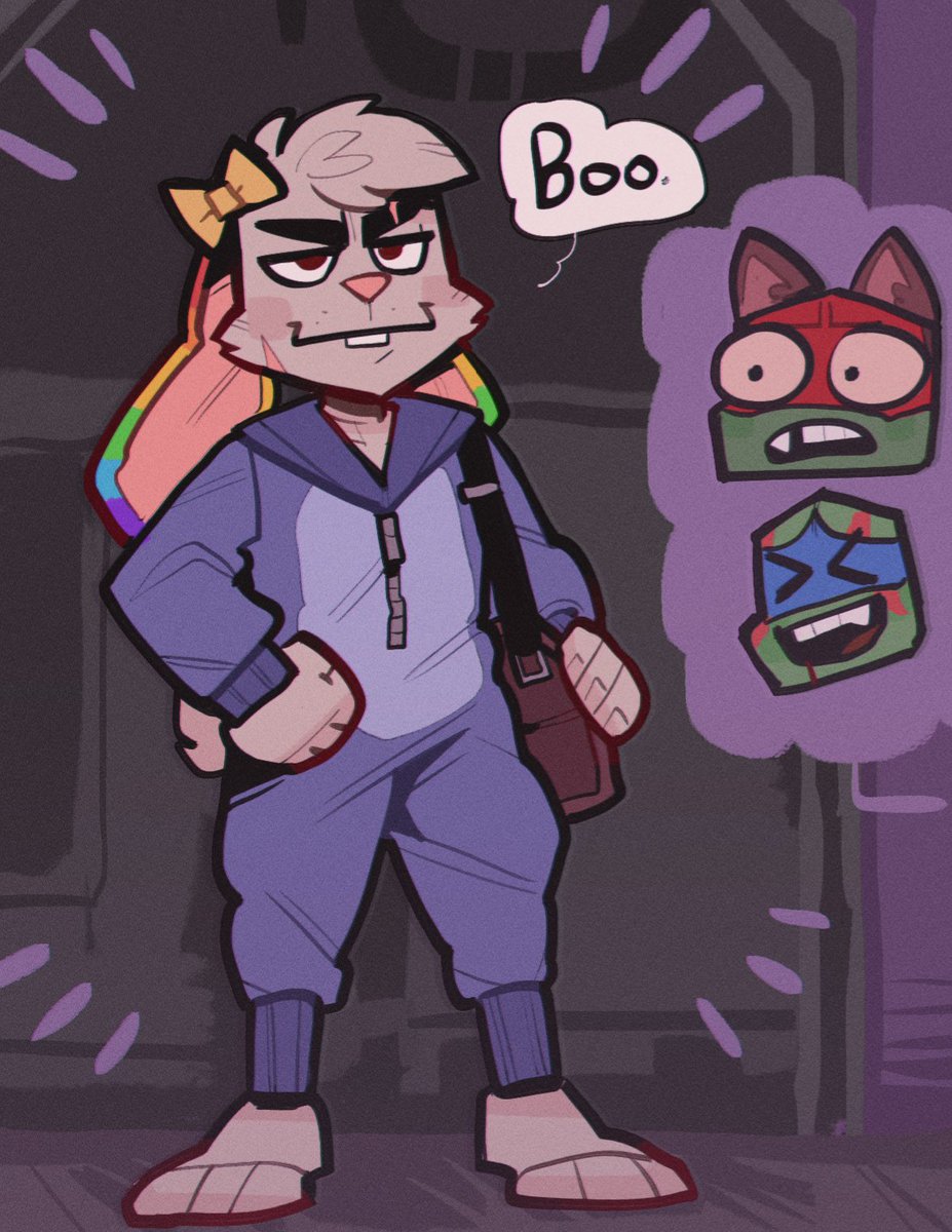 i see ur "raph is scared of usagi cuz of his fear of mrs cuddles" and raise u "usagi dresses up as mrs cuddles for halloween on purpose so they can all collectively mock her in an effort to ease raphs fear" #rottmnt #RiseoftheTMNT #usagichronicles #leosagi