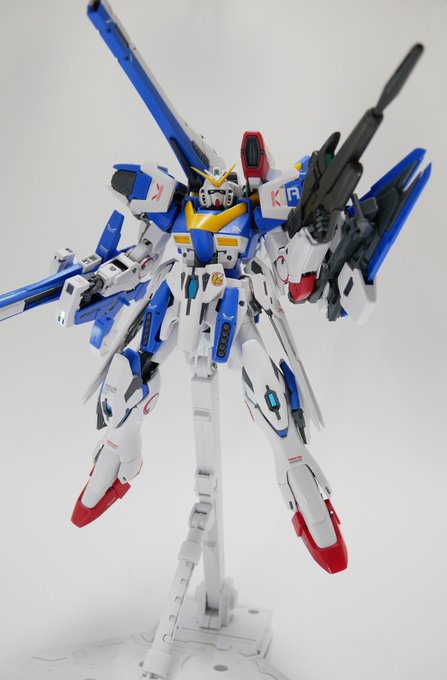 MG V2アサルトバスター(GHL.ver)②#機動戦士Vガンダム #V2アサルトバスター #ガンプラ #ガンプラ好きと繋がりたい #ガンプラの画像を貼るとRTされると聞いて 金のパーツをGHL雑誌で見たホワイト仕上げ。こちらの方が断然好き。すさんだ心に武器は危険なんです、クロノクルさん!!