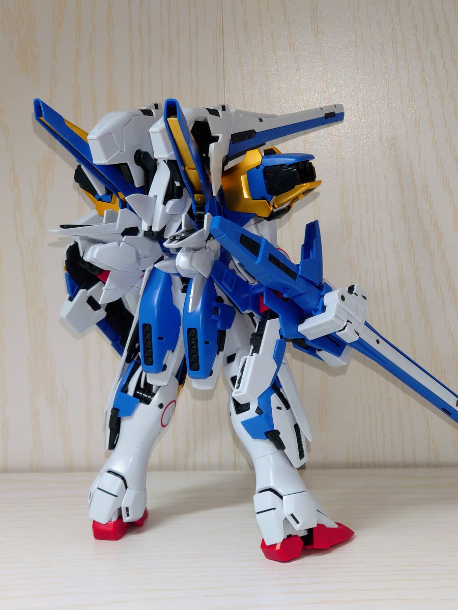 MG 1/100 V2アサルトバスターガンダム Ver.Ka完成 パーツ自体や組立方法が洗練されていて組立時に感動する程です。完成時に思わず見とれるカッコ良さ。また、成形色、特に金メッキの綺麗な色合いは非常に気に入っており、水転写デカールは最低限にしてます。 #ガンプラ #V2アサルトバスター