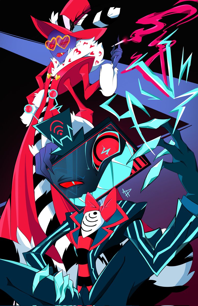 Here's my fanart of Vox and Valentino finally colored in :D #vox #val #HazbinHotelFanart #HazbinHotel #fanart