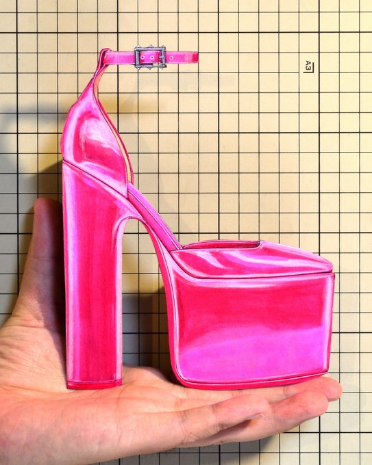 【今日の靴】01985足目 “VALENTINO” Valentino Garavani Discobox Patent Leather Platform Pump 180mm(FW2022) #ValentinoPinkPPCollection #Valentino #valentinogaravani #PierpaoloPiccioli #illustration #copic #copicmarkers #切り絵 #イラスト #コピック