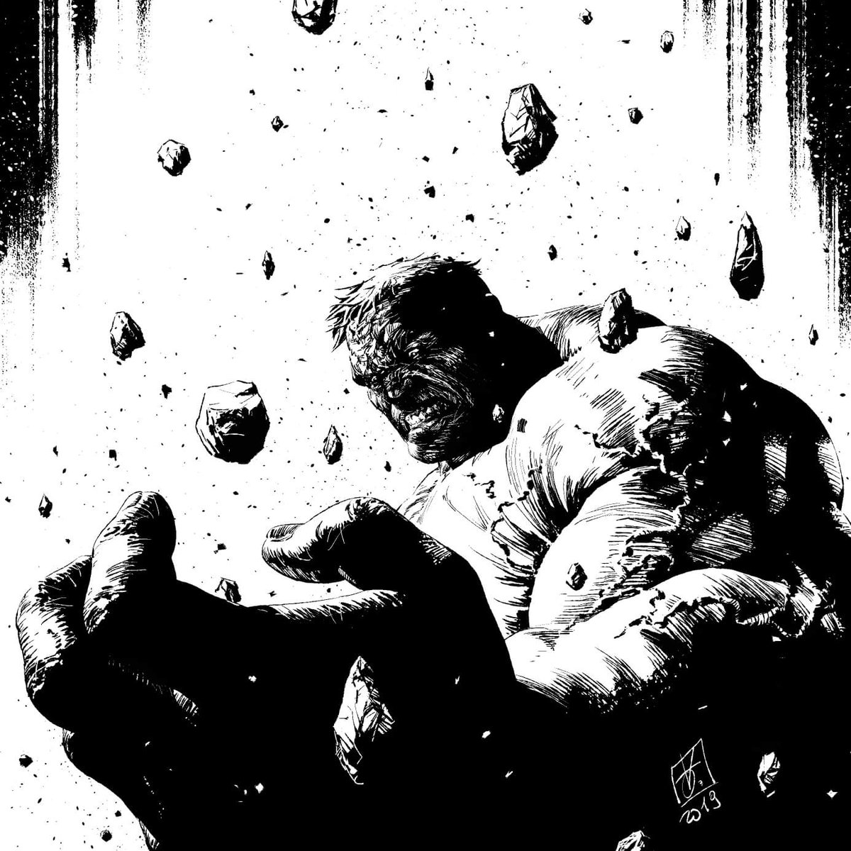 Hulk #2 Print Version & Original Scan (sold out). You can find all of my originals on @KirbysComicArt #kirbyscomic #kirbyscomicart #marvel #marvelcomics #valeriogiangiordano #cover #hulk #comics #illustration #textures #comiccollector #comiccollection #originalart #originalink