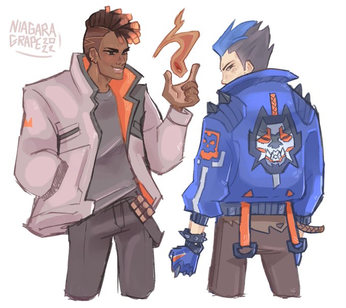 twitter blocked my original account so i called these two dumbasses to help me out follow or else #VALORANTfanart #valorantyoru #valorantphoenix #yorunix #yoru #phoenix