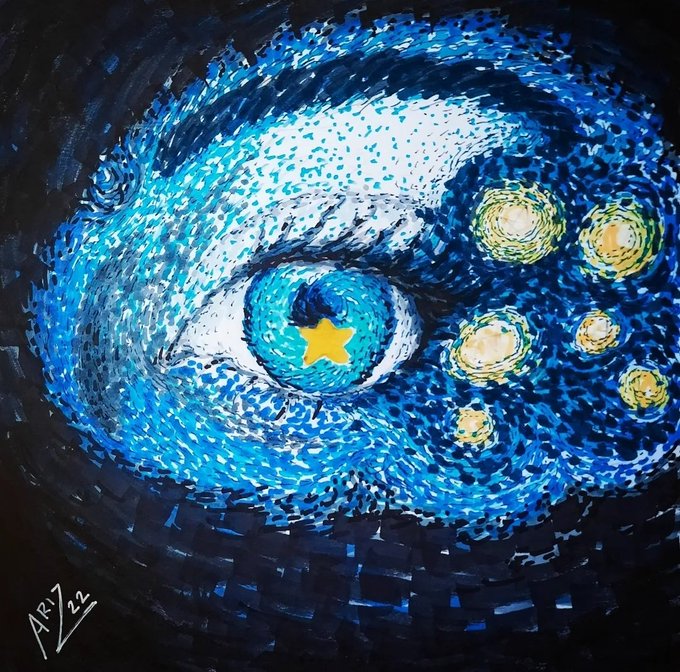 What's more tempting than watching the world through starry eyes ✨⭐ 👁️ Day 25, Tempting #inktober2022 #Illustration #Tempting #StarryNight #VanGogh #VanGoghInspired