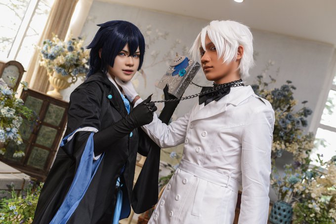 So happy with our new photos! 😍❤️💙 My perfect Noé @Pewtuniia Me as Vanitas Photographer is amazing @cleliegw #Vanitas #VanitasNoCarte #Vanitascosplay #vanitasnocartecosplay #thecasestudyofvanitas #cosplay #Vanitasnoshuki #noecosplay #noearchiviste #noéarchivistecosplay