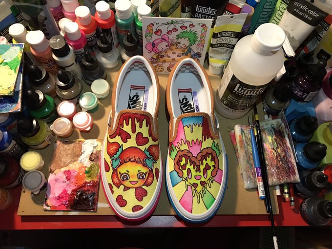 Happy pizza girl is done!!!😋❤️🔥🌈💖🍕🙌VANSカスタム色塗り終了しました〜\( ˆoˆ )/ 創拡 #draw #みんなで楽しむTwitter展覧会 #painting #kawaii #イラスト #イラスト好きな人と繋がりたい #絵描きさんと繋がりたい #秋の創作クラスタフォロー祭り #vans #vanscustom #カスタム #バンズ