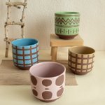 This set of planter collections is full of mystery and fun, which is painted with geometry patterns and also in different glaze.🌻 #Vase #artvsartist2021 #art #decor #homedecor #interiordesign #designthinking #plants #ceramics #pottery #joyye #joyyeceramic