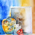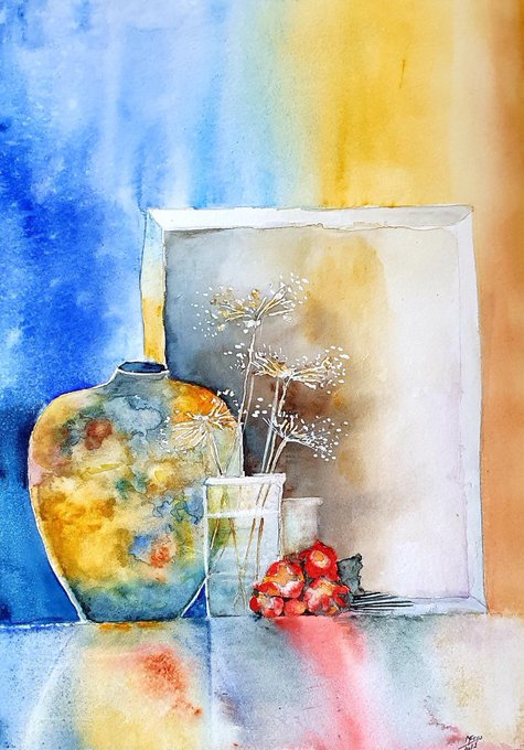 A reminder of summer in #watercolour today, it’s so stormy in #fife I cheered myself up with lashings of #pink #flowers #vase #painting #ArtistOnTwitter #art