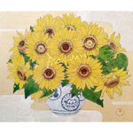 《夏の花瓶1 向日葵》 日本画 F8号サイズ(38cm×45.5cm) 向日葵が咲き始めました。 向日葵を目一杯活けました。 背景にすやり霞をいれています。 継ぎ和紙に日本画の技法で描きました。 #日本画 #向日葵 #花が好き #ひまわり #dandelions #sunflowers #sunflowerpainting #vase #stilllife