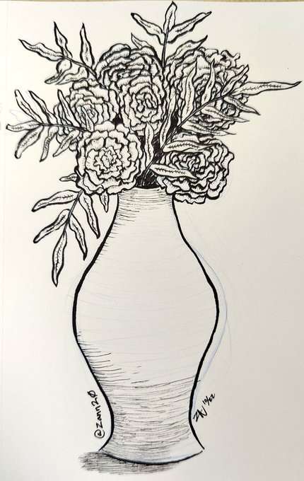 #inktober2022 day 6 is bouquet so here is bouquet of marigolds! #bouquet #flower #marigold #vase #diadelosmuertos #inktober #ink #brushpen #micronpen #penandink #drawing #pen #art #artist