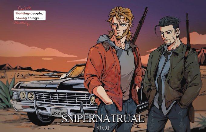 Day95 #vasioweek2022 (4/7) : HUNTING Honestly, when I read today's prompt a voice suddenly appeared in my mind: saving people hunting things, family business... 😂 ...So, let's take it easy today, present you with Vasio Supernatural crossover😂:SNIPERNATRUAL [??