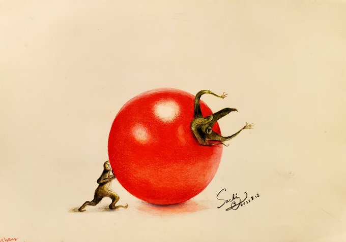 Tomato ・ 想像でひとつ。 ・ #illustration #dailyart #1day1draw #diary #degitalart #drawing #painting #sketch #food #vegitable #tomato #イラスト #イラストレーション #絵日記 #デジタルイラスト #食べ物 #野菜 #トマト