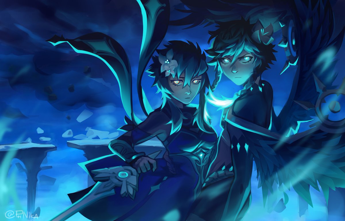 [19 March 2022] Holy Matrimony of the Winds of Time and Stellar Space. #venlumiweek2022 #venlumi #venti #lumine #Archsartrep #ウェン蛍 #genshinimpact #genshinimpactfanart