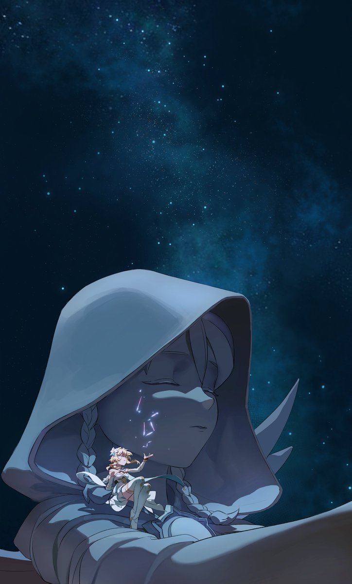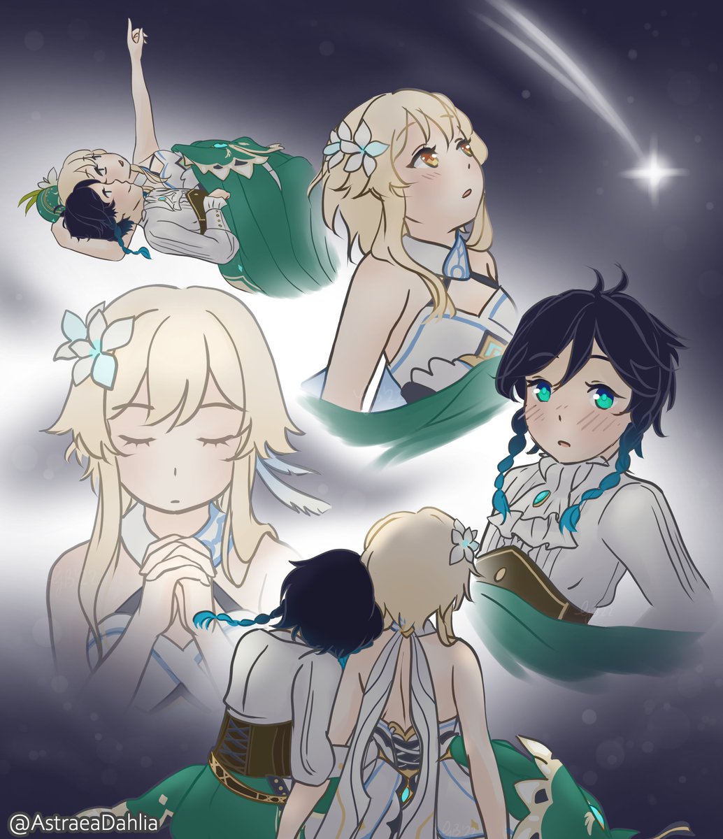 #venlumiweek2022 Day 5 - ,,Stargazing'' The Beloved of the Anemo Archon. I've taken inspiration by one of @LunASMR_Voice's audios for this.✨🌙 #venti #lumine #venlumi #genshinimpact #barbatos