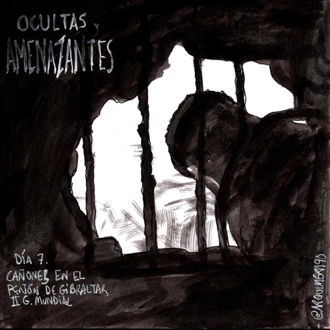 Día 7. Amenazantes. En el Peñón de Gibraltar encuentras los túneles de la II Guerra Mundial, donde todavía descansan cañones que apuntan a la nueva ciudad a través del laberinto horadado en la roca. #inktober #wINKdowtober #sketch #ventanas #Gibraltar #peñón #cañones