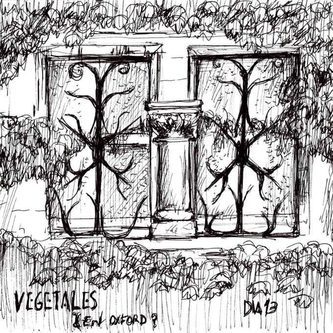 Día 13. Tras el manto verde aparecen los ojos del edificio. El mismo manto verde que sirve de filtro y colorea la luz interior, también construye una arquitectura #oxford #ventanas #inktober #wINKdowtober #sketch #abrigo #ink #vegetal #rejamediomodernista #architecture