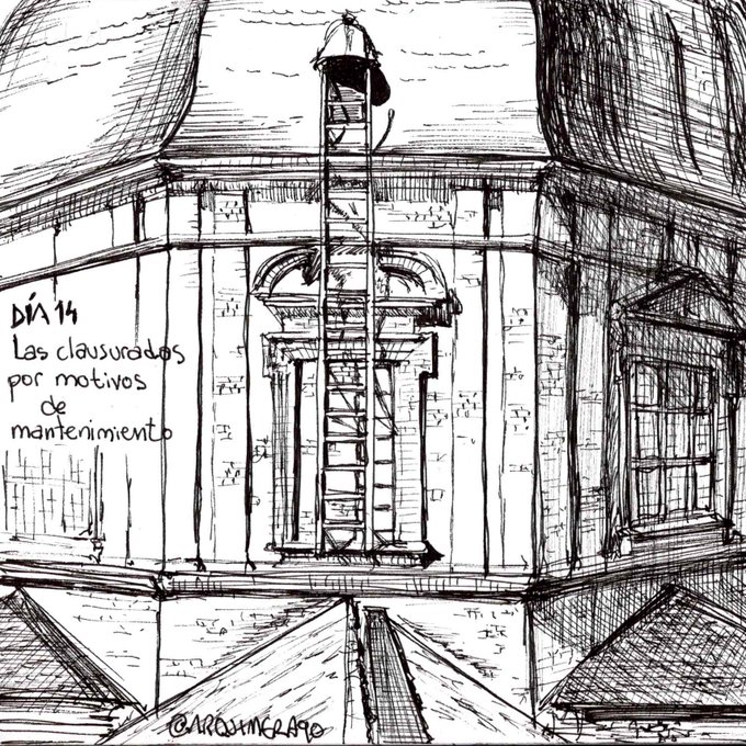 Día 8. Pues hay un edificio en San Sebastián (el museo de San Telmo) donde hay una señalética específica para evitar que la gente trepe por la fachada #inktober #wINKdowtober #sketch #ventanas #SanSebastián #tardecito #NietoSobejano #arquitectura