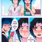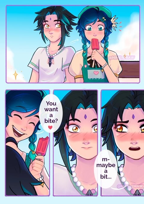 Aa my heart--- Xiaoven (2/3) Eating ice cream in the sky 🥰 Retweet, share, comment if u can! helps me get through this wild times! #xiaoven #venti #xiao #ventixxiao #genshinimpact #genshinimpactfanart #ventifanart #comic