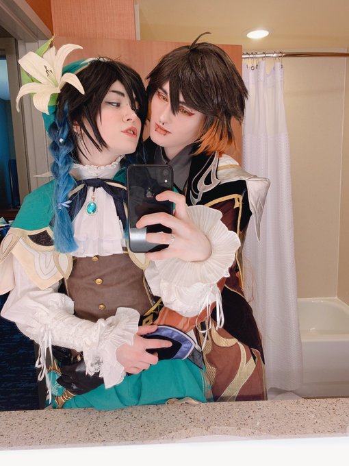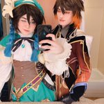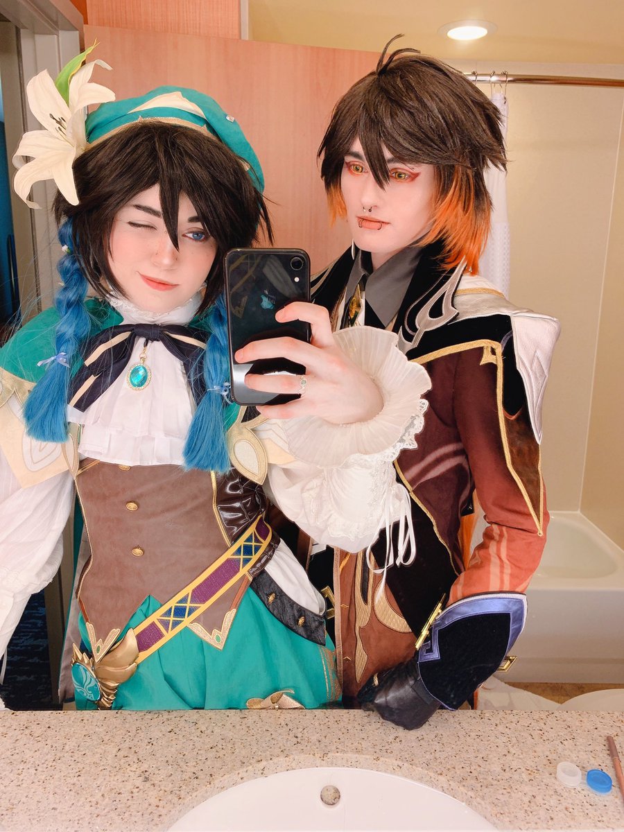 zhongven nation??? can you hear me???? i-is this thing on… #zhongven #zhongli #venti #zhonglicosplay #venticosplay #genshinimpact #genshinimpactcosplay