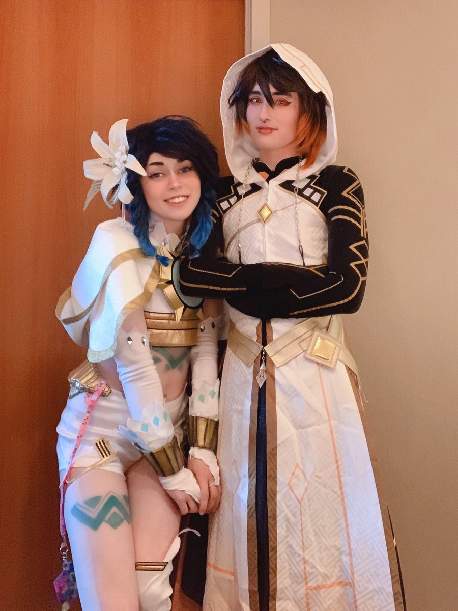 just me & the bestieeee 😋✌️#zhongven #zhongli #venti #zhonglicosplay #venticosplay #genshinimpact #genshinimpactcosplay