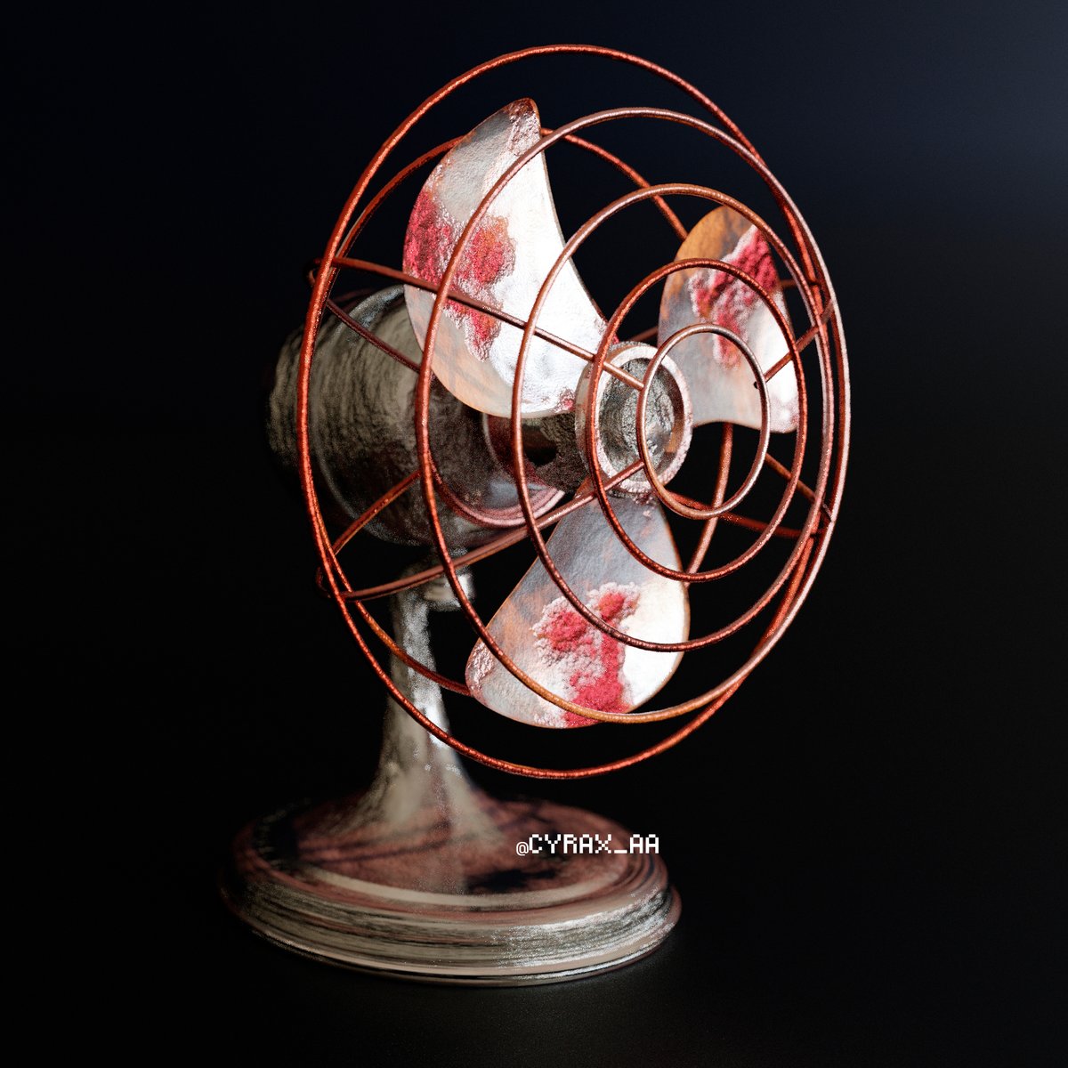 Continuando con el #Inktober2021 ,hoy toca turno de un modelado 3D de un #Ventilador con un toque tétrico,¿que les parece?/Continuing with #Inktober2021, today it's the turn of a 3D modeling of a #Fan with a tetric touch, what do you think? #inktober2021day7 #blendercommunity