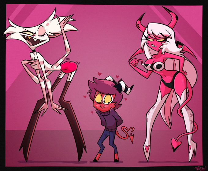 Charming hellish trio 🩷💜🖤 #HelluvaBoss #HelluvaBossStella #HelluvaBossFanart #HelluvaBossVerosika #VerosikaMayDay #SallieMay